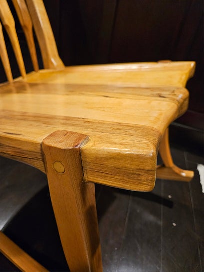 For several years I had been searching for a chair that I could sit in while playing my bass or my guitar. Bruce created the perfect solution when he made this armless rocking chair!! It gives me great support for my back and lets me spend many happy hours playing music in it! Not only that, but the chair is a gorgeous work of art, and it's destined to become an heirloom piece. No way this is ever going to leave our family!! Bruce, I thank you so much!!